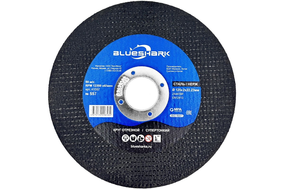 Blueshark 41557 диск отрезной по металлу/нержавеющей стали 125х2,0х22,23мм ZA30TBF
