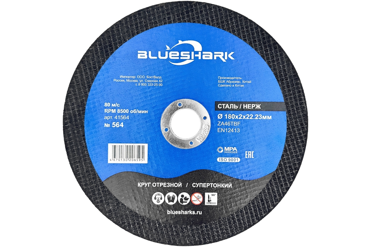 Blueshark 41564 диск отрезной по металлу/нержавеющей стали 180х2,0х22,23мм ZA30TBF