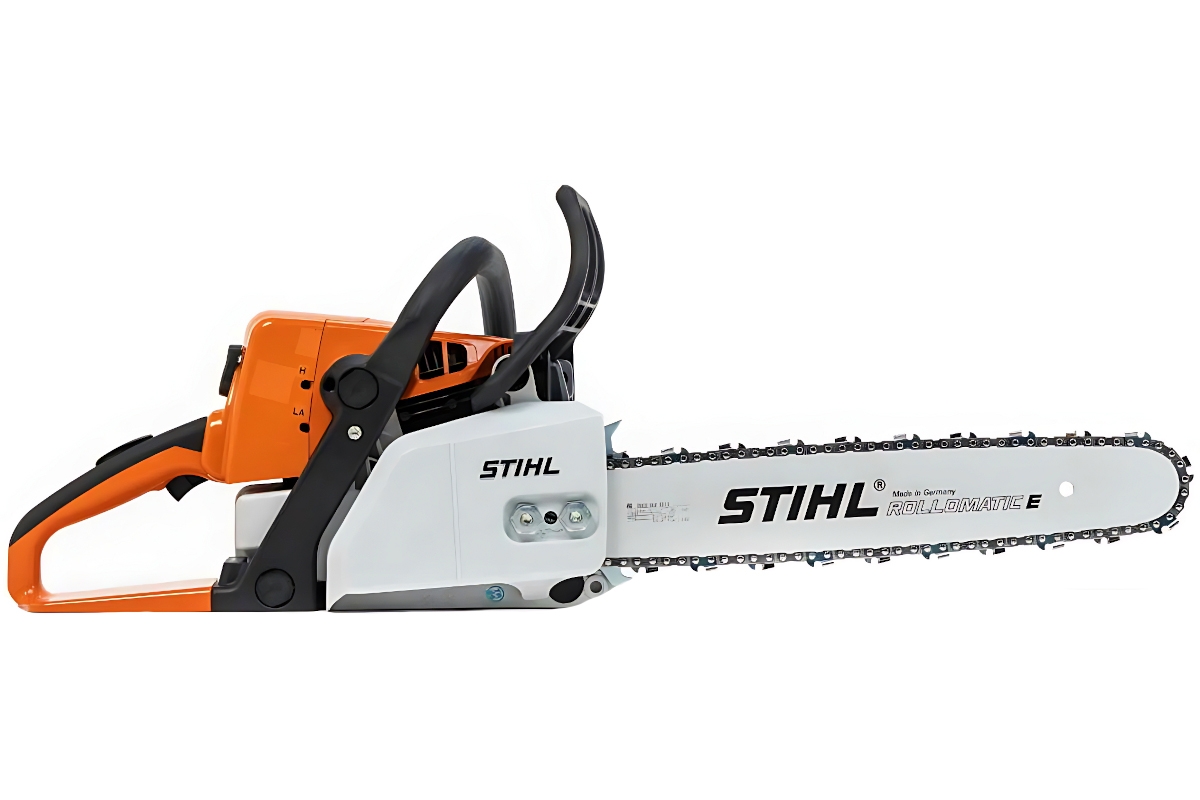 Доступ к натяжному винту обеспечивается сбоку через крышку цепной звёздочки, это предотвращает контакт рук с острой цепью и кончиками зубчатого упора.