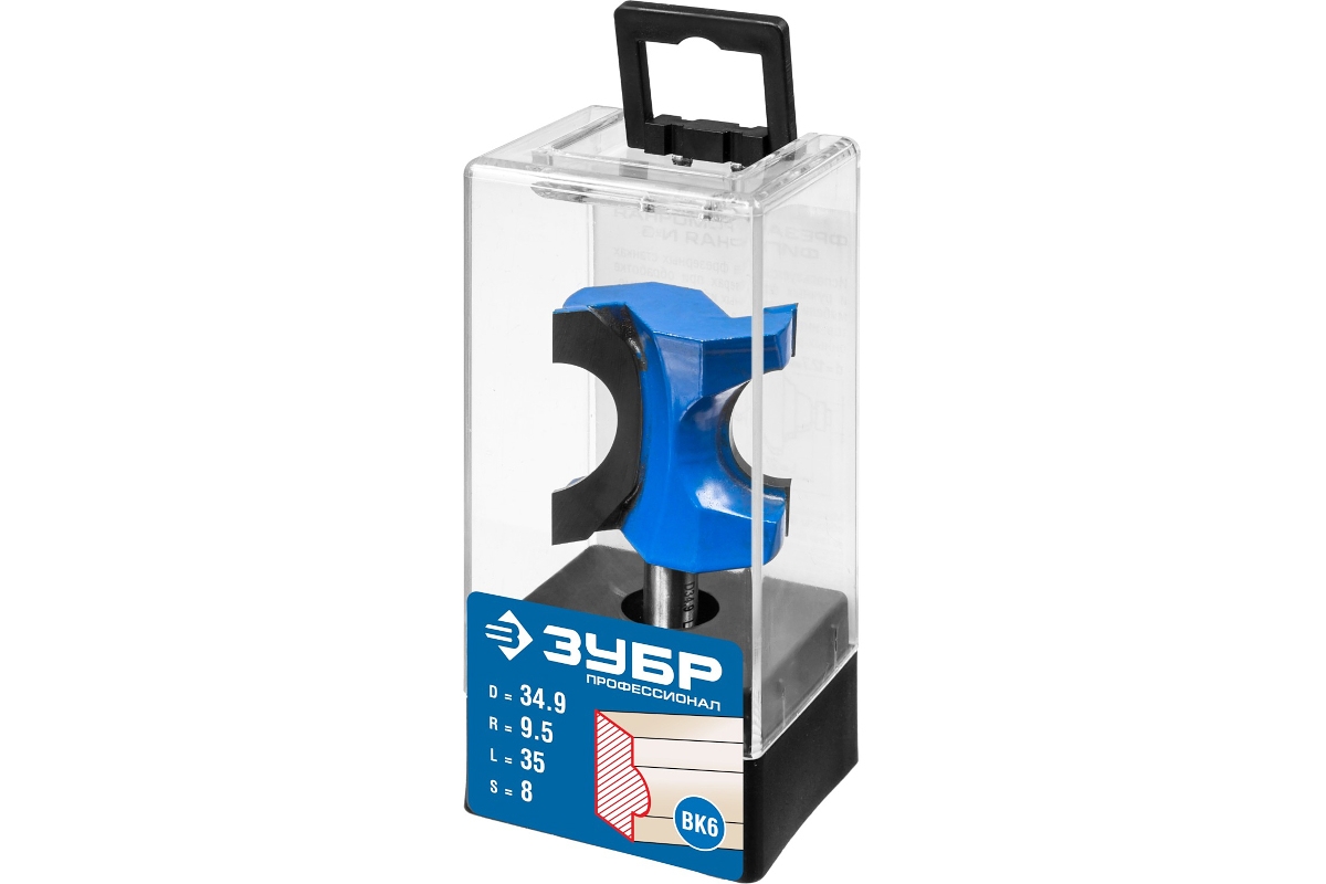 Зубр 28723-34.9 фреза полустержневая (D=34.9мм, l=35мм, S=8мм, радиус 9,5мм) Профессионал