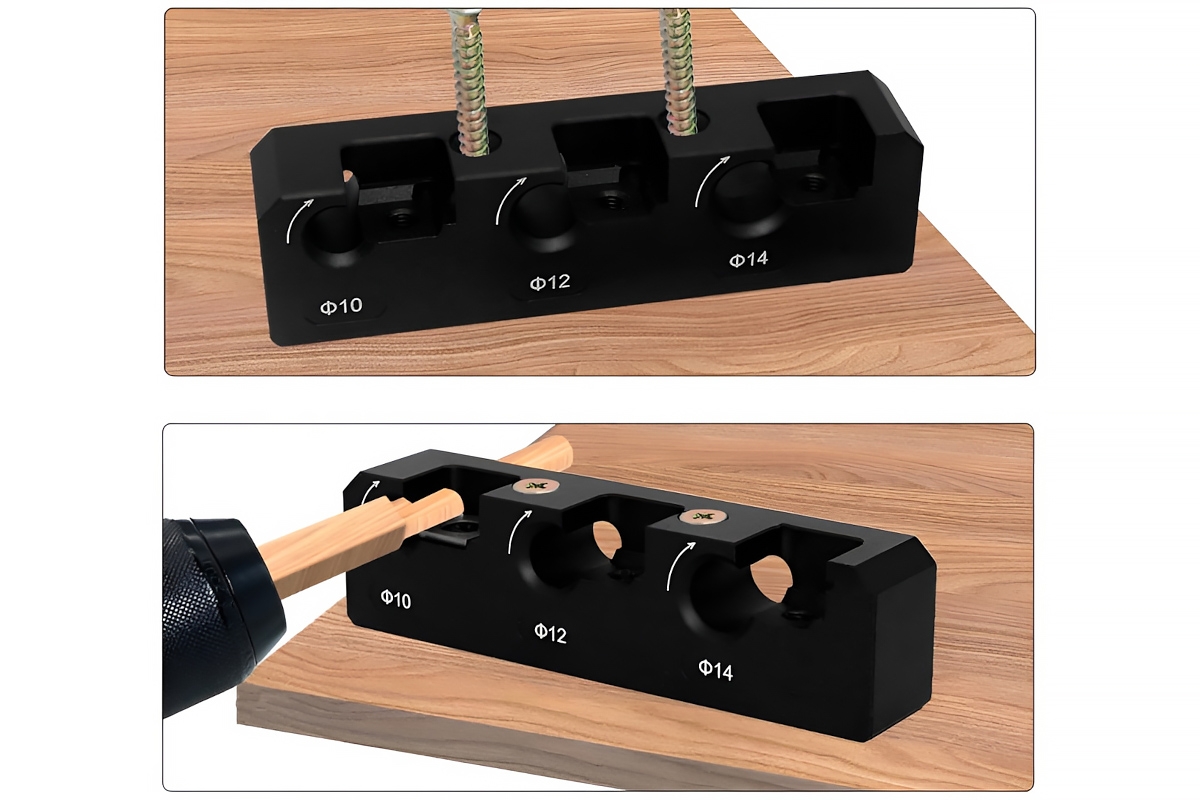 • Кондуктор для дюбелей ETT-024 изготовлен ​​из высококачественного алюминиевого сплава с анодированной поверхностью.