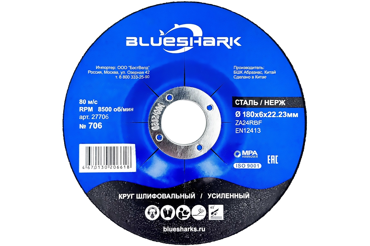 Blueshark 27706 диск зачистной по металлу/нержавеющей стали 180х6,0х22,23мм №706, тип 27, ZA24RBF
