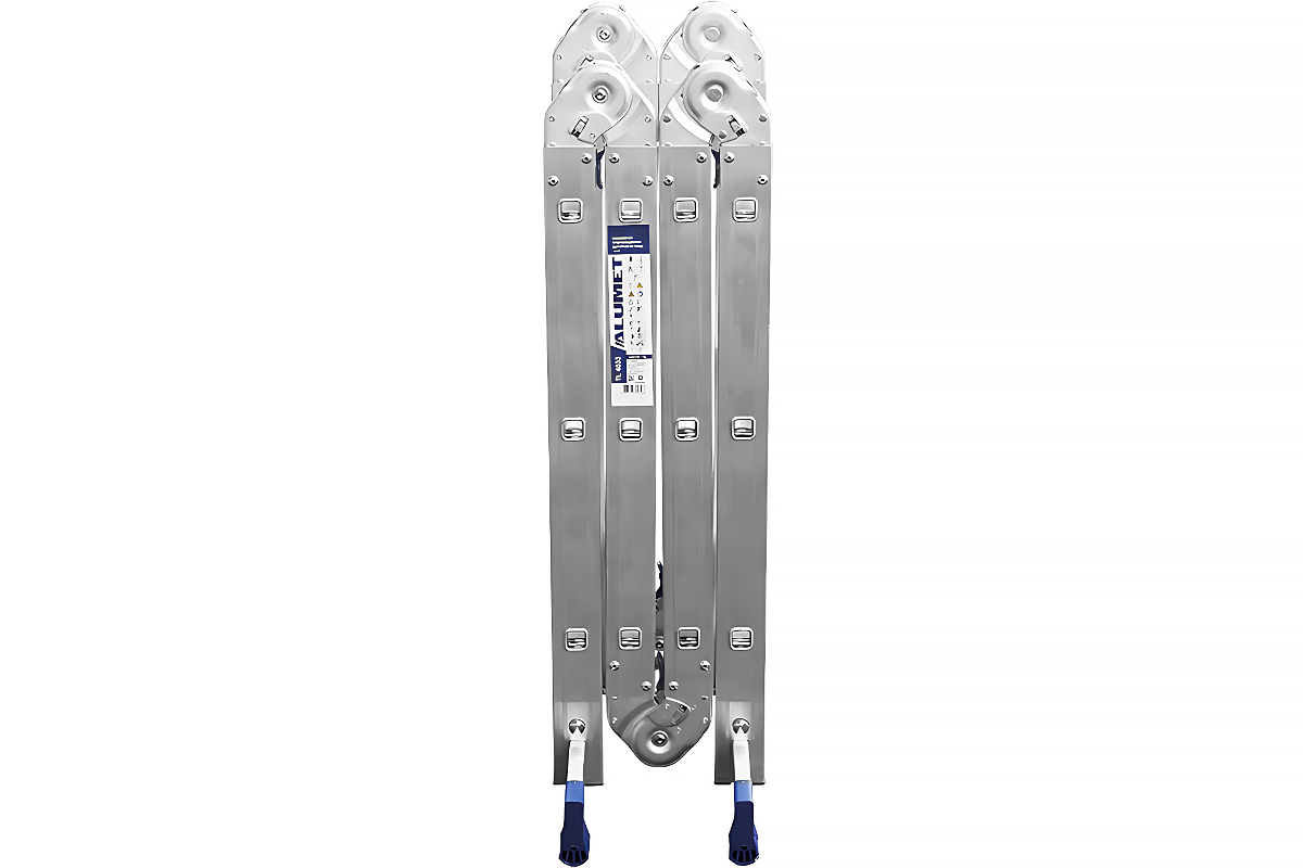 • Лестница ощутимо (почти на 6 Кг) тяжелее такой же по длине приставной лестницы серий Н1 или Р1 из-за шести массивных стальных шарниров и по этой же причине существенно дороже.