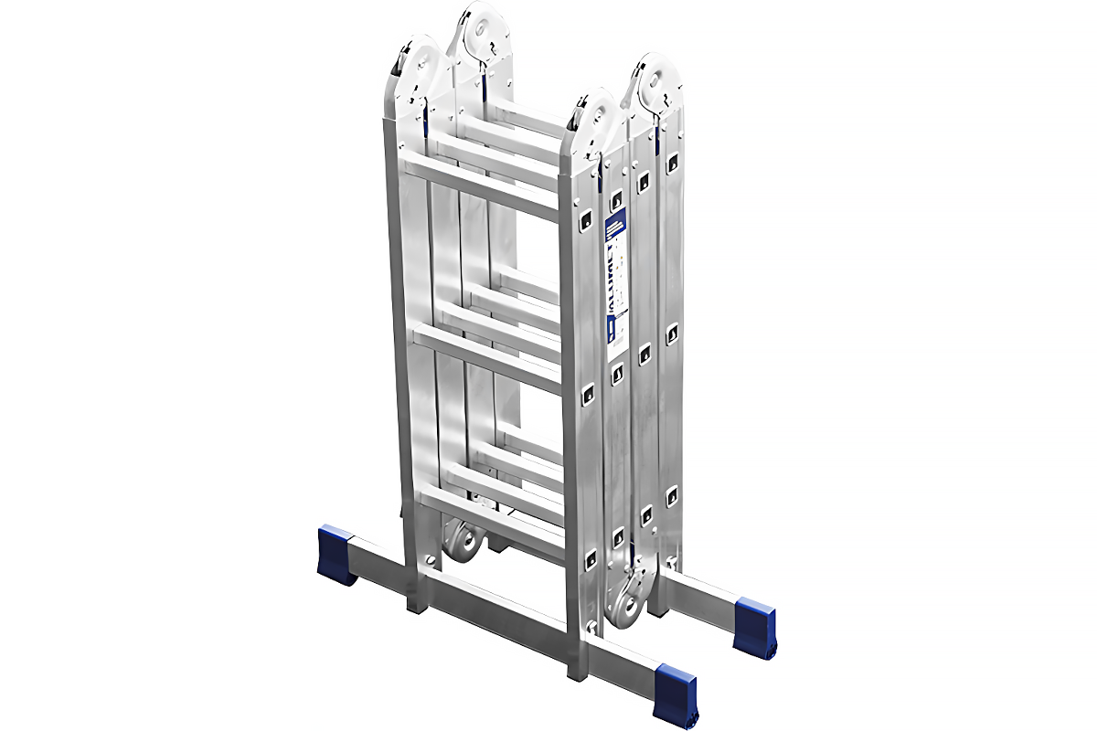 • Лестница состоит из четырех секций, соединенных между собой стальными лестничными шарнирами с углами фиксации 35, 105 и 180 градусов.