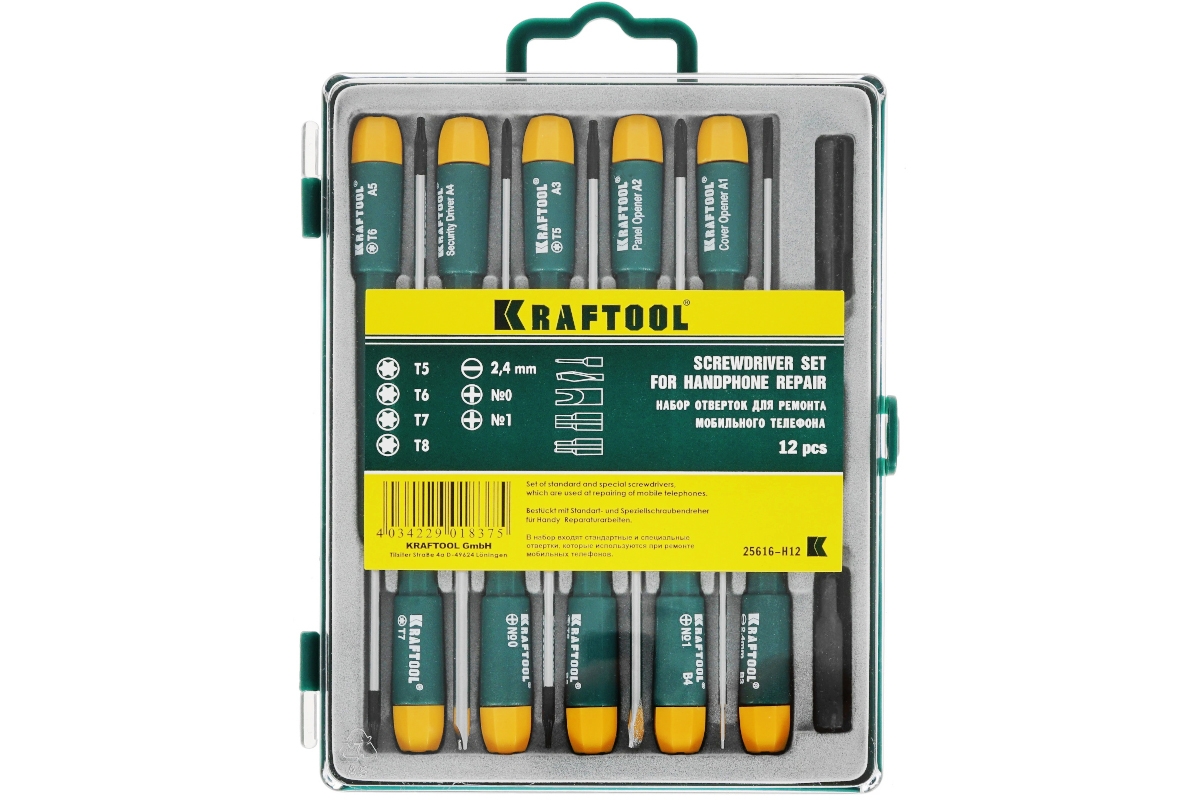 Kraftool 25616-H12 набор отвёрток для точных работ 12 предметов в боксе X-Telecom