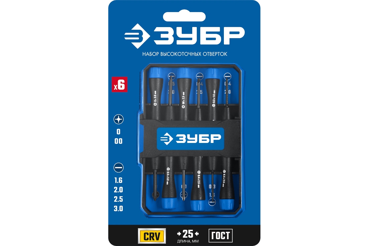 Зубр 25658-Н6 набор отвёрток для точных работ 6 предметов TX-6 Профессионал