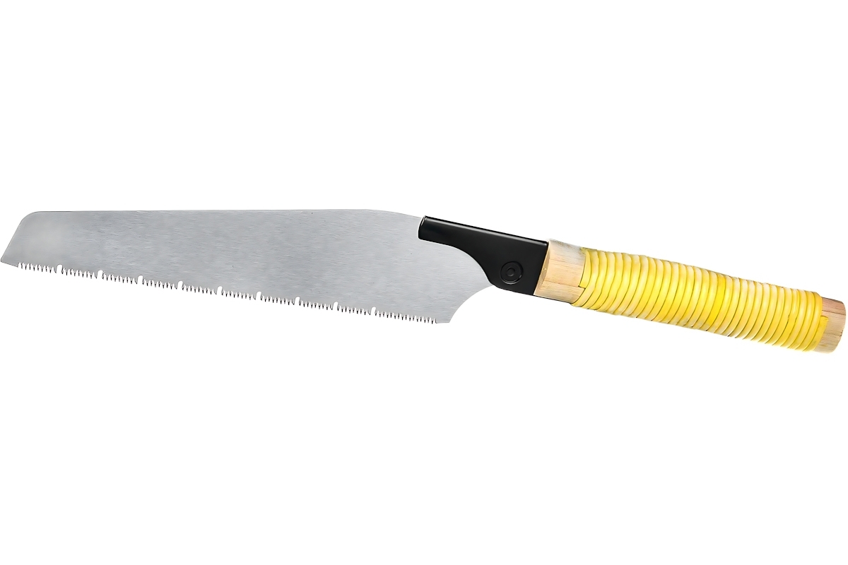 • Калёные зубья направлены к рукояти, что обеспечивает ровный рез без дополнительной обработки.