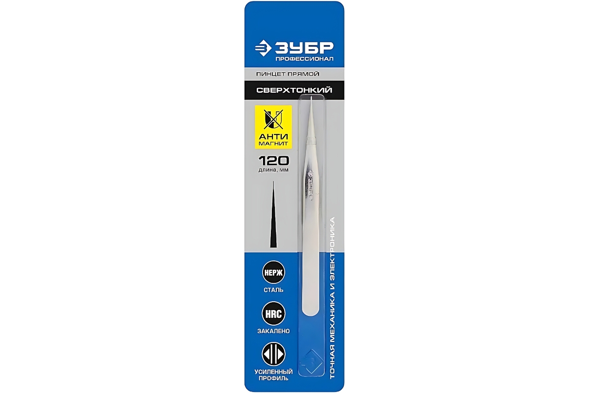 Зубр 222111 прямой антимагнитный пинцет 120мм, сверхтонкие заостренные губки Профессионал
