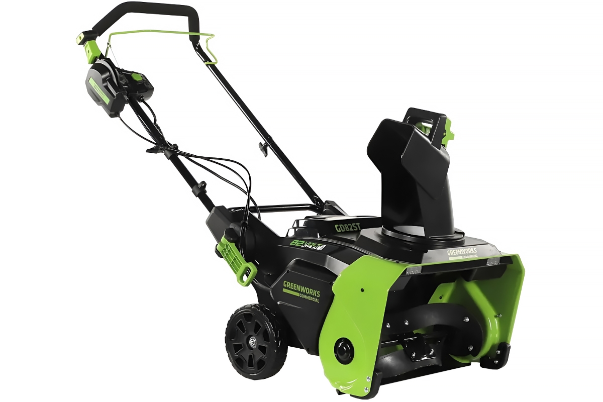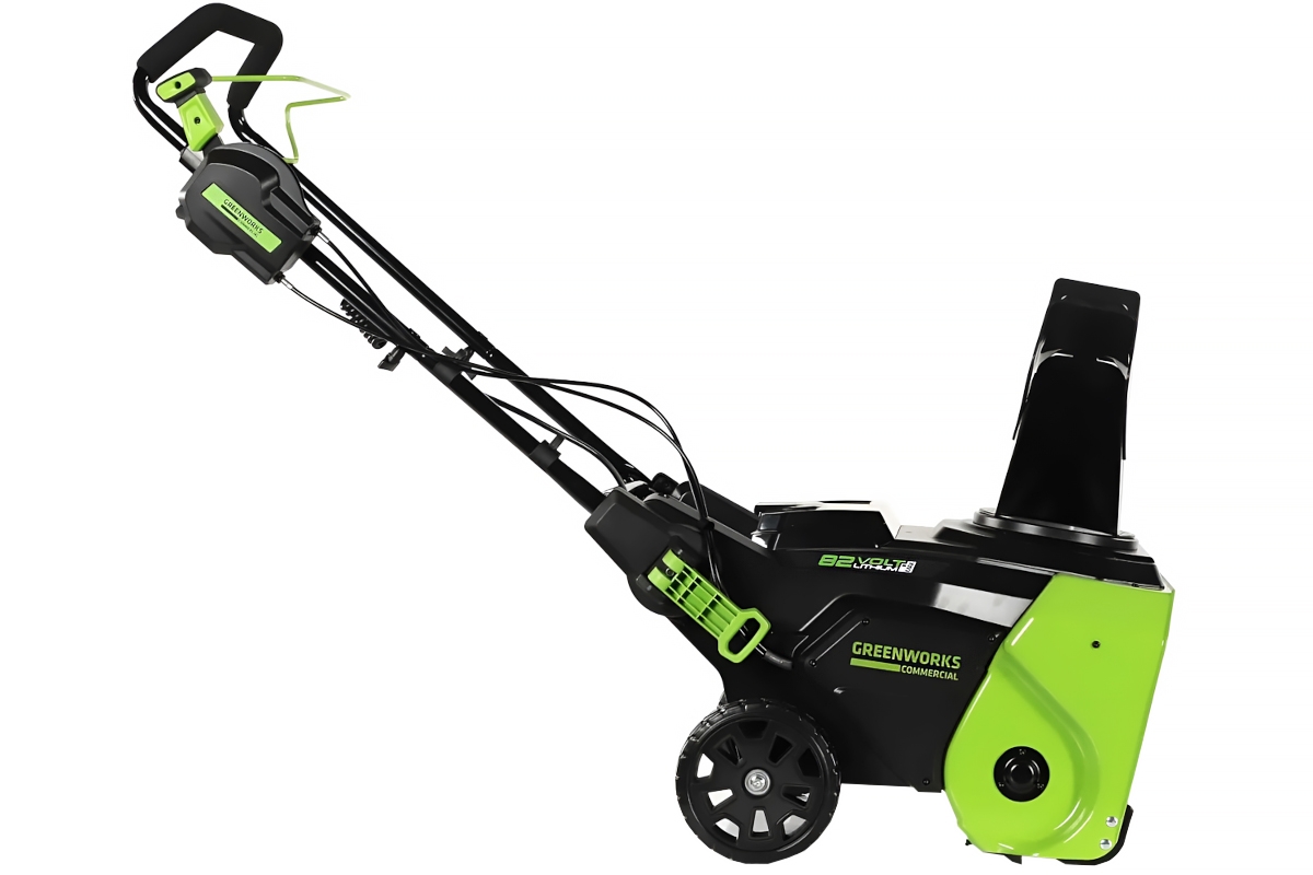 Профессиональный снегоуборщик Greenworks GD82ST 82V предназначен для очистки от снега территории перед домом, гаражом, а также веранд, дорожек и других мест, где затруднительно использовать бензиновый снегоочиститель или есть декоративные покрытия.