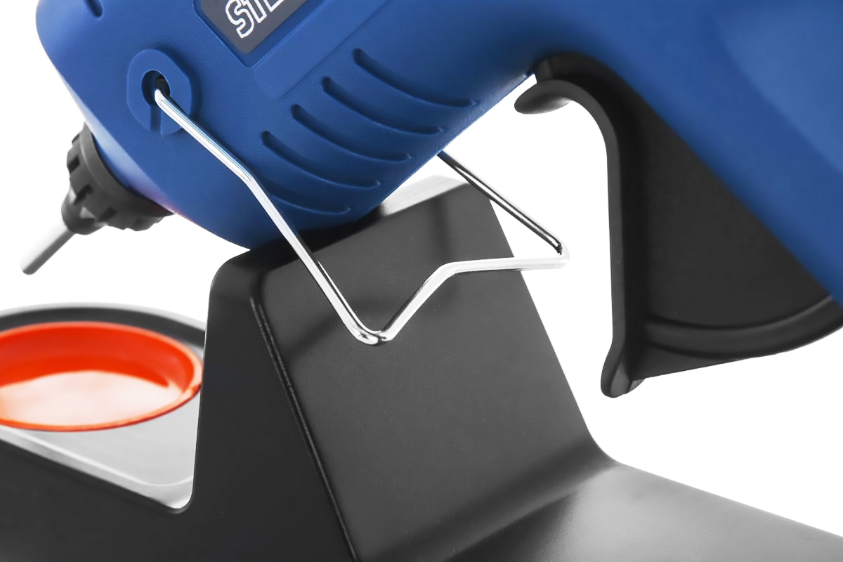• При установке пистолета в зарядное устройство питание подается автоматически, обеспечивая нагрев клея.