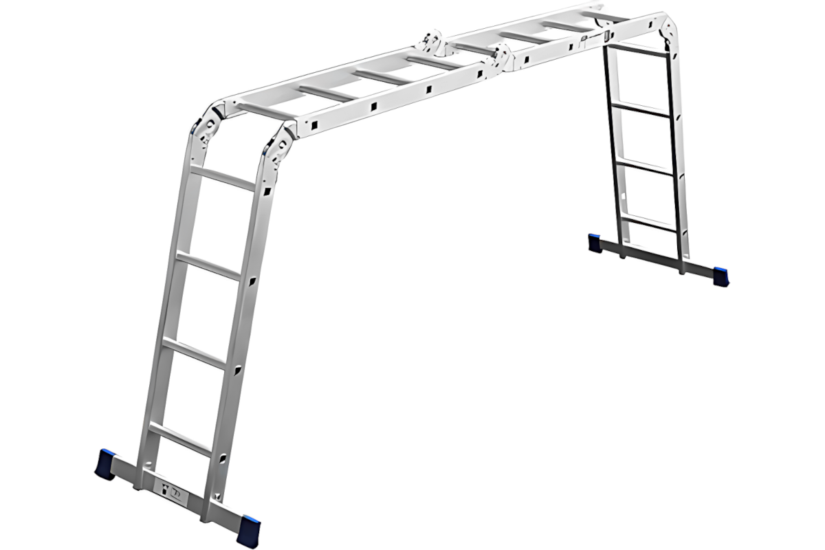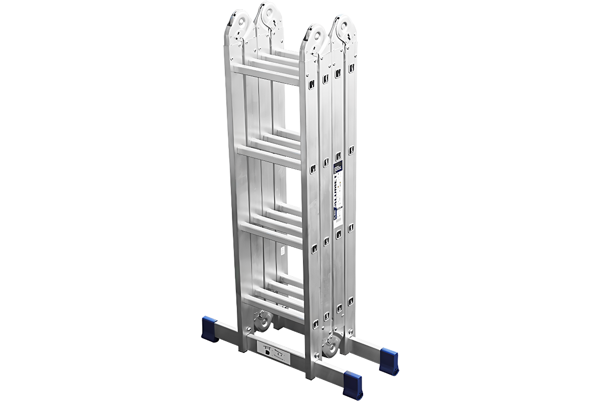 Лестница состоит из четырех секций, соединенных между собой стальными лестничными шарнирами с углами фиксации 35, 105 и 180 градусов.