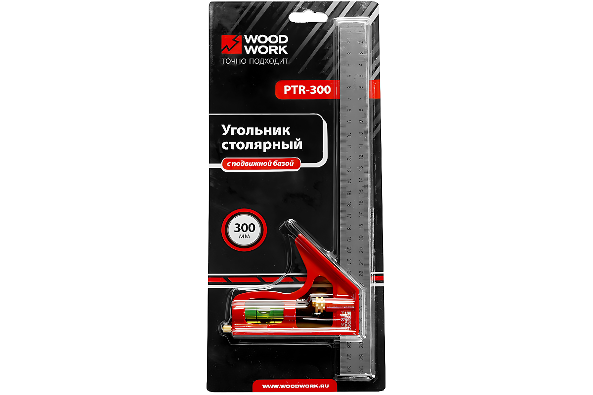 Угольник с подвижной базой PTR-300 Woodwork - мультиинструмент: прямой угол, глубиномер, измеритель высоты, вертикальный уровень.
